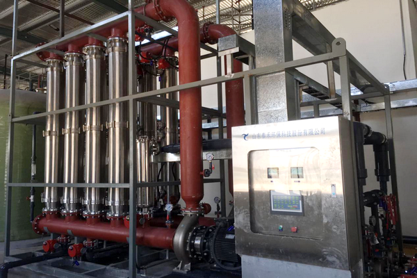 山東泰禾環(huán)??萍脊煞萦邢薰狙h(huán)水廢水回用處理系統(tǒng)包括一體化高速反應(yīng)池,壓濾機(jī)去硬度和固體雜質(zhì),然后依次連接的自清洗過濾器、陶瓷膜超濾組件和RO反滲透膜組件,該循環(huán)冷卻水廢水回用系統(tǒng)的脫鹽率大大提高,作為循環(huán)冷卻水系統(tǒng)補(bǔ)給水循環(huán)使用,有效優(yōu)化循環(huán)冷卻水水質(zhì),降低循環(huán)冷卻水的鹽分濃度。